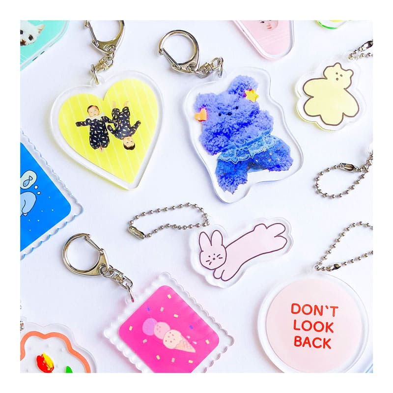 アクリルキーホルダーやアクリルスタンドなど、思わず集めたくなるオリジナルアクリルグッズを1個から制作できます。ストラップやアクリルカラーも豊富で、デザインの世界観を大切にした仕上がりに。